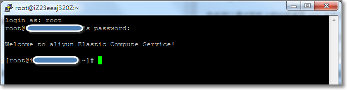 5、根据提示,分别输入您的 Linux 云服务器 IP 实例的用户名和密码。密码不会显示在屏幕上。输入完成后回车。